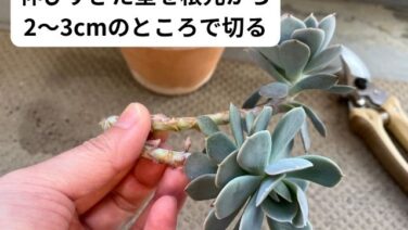 多肉植物 エケベリアの花は切るべき?咲いた後の正しい処理と注意点を解説 エケベリアの花芽を切るべきか残すべきかお悩みですか?花びらのように広がるロゼット状の葉が可愛いエケベリア。春先になると株元からニョキニョキと花芽を伸ばすことがあります。今回はエケベリアの花芽の対処方法について解説します! 2025.10.08 多肉植物